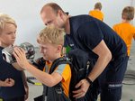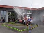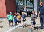 An verschiedenen Stationen konnten die Kinder die Einsatzbekleidung anprobieren, Gerätschaften ausprobieren und die Feuerwehrfahrzeuge erkunden. Außerdem wurde mit den wasserführenden Geräten eine kreative Figur gebaut, die das Wasser in alle Richtungen spritzte. Zum krönenden Abschluss wurden alle Kinder sicher mit den Feuerwehrautos nach Hause gebracht.