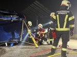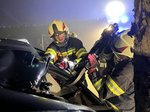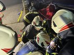 Am Donnerstag führte unsere Technische Übungsgruppe eine Einsatzübung zum Thema Verkehrsunfall durch. Im Übungsszenario war ein PKW seitlich gegen einen Baum geprallt und in dieser Position liegen geblieben. Im Fahrzeug befanden sich zwei eingeklemmte Personen, von denen eine nicht ansprechbar war. Die reglose Person wurde zuerst mittels Crashrettung aus dem Fahrzeug befreit. Anschließend konnte die ansprechbare Person innerhalb kürzester Zeit schonend gerettet werden.