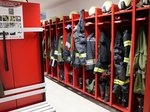 Im Erdgeschoss befinden sich die Fahrzeughalle, eine Waschbox mit Schlauchturm, eine Werkstatt fĂŒr GerĂ€tewartung sowie eine Atemschutzwerkstatt. AuĂerdem gibt es getrennte SpindrĂ€ume fĂŒr Damen und Herren, SanitĂ€ranlagen und den Kommandoraum, in dem sich auch die Einsatzzentrale befindet. Diese wird bei gröĂeren oder lĂ€nger andauernden EinsĂ€tzen, etwa bei Unwettern, besetzt.