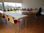 Im Obergeschoss liegen der Jugendraum sowie ein groĂer Schulungsraum.